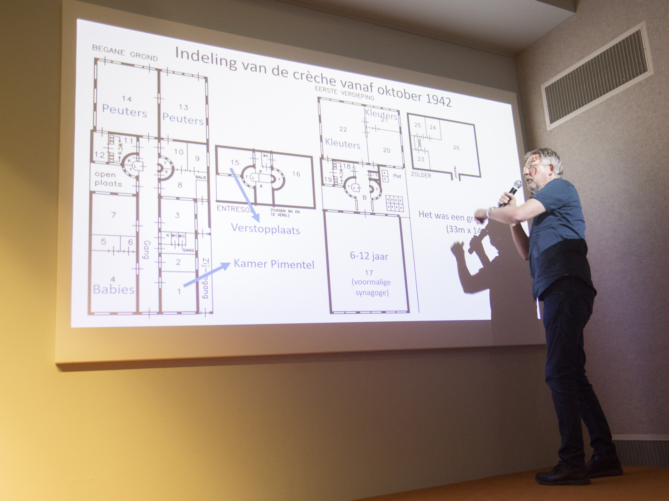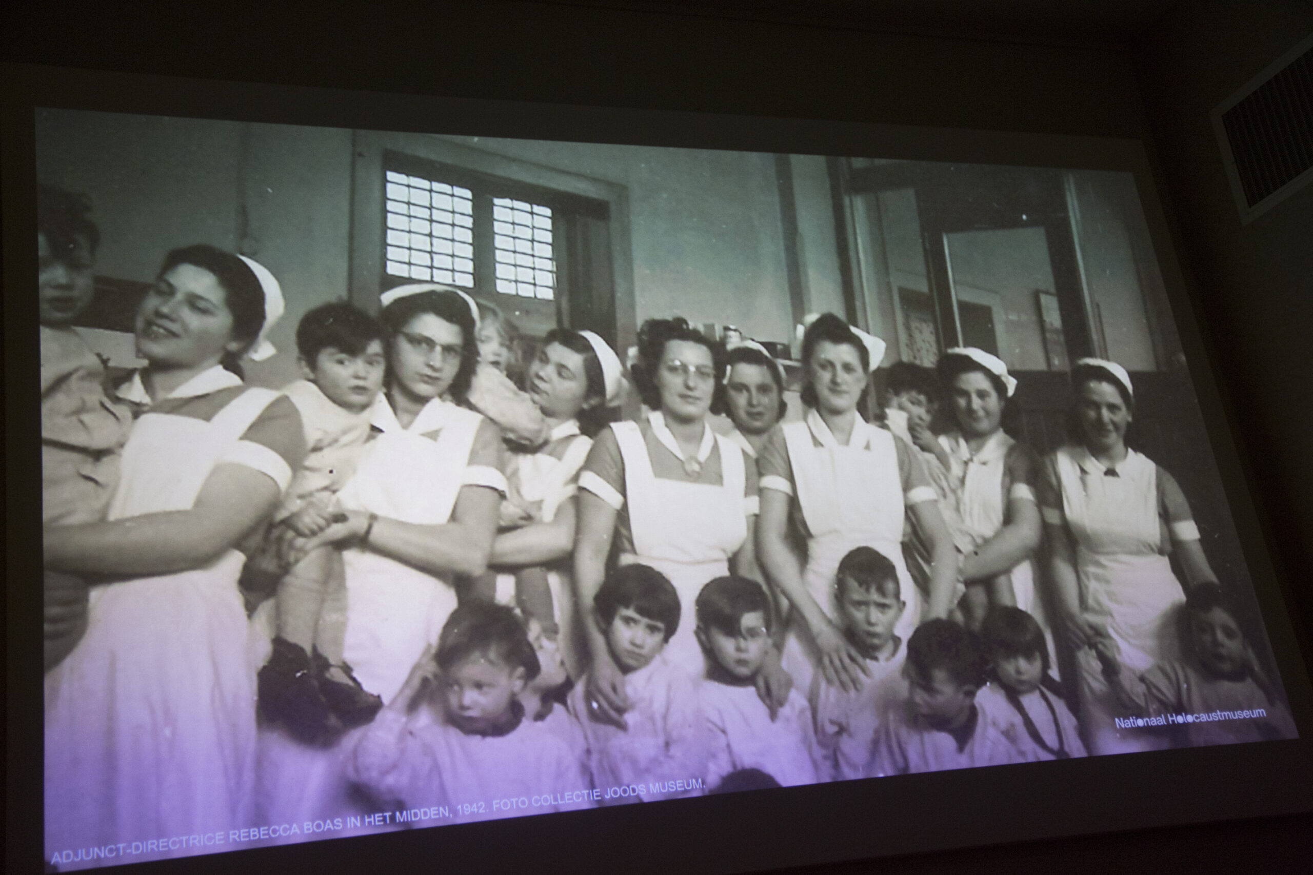 Vervolgens was het woord aan Esther Göbel, die inging op het verhaal van de crèche tijdens de Tweede Wereldoorlog. Ze vertelde boeiend over hoe Henriëtte Pimentel, Walter Süskind en Felix Halverstad eind december 1942 samen met het verzet een plan maakten om kinderen uit de crèche te smokkelen. De kinderverzorgsters, vaak zelf nog een kind, speelden daarbij een belangrijke rol.